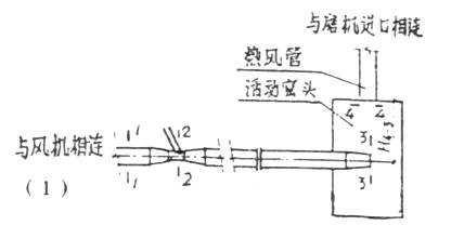 风煤混合器2一2截面处的口径过大或过小都会使双管绞刀内出现返风现象。若过大,这里的风速低,下煤支管中不易产生负压;若过小,系统阻力必然变大,当风机的能力不足时,下煤支管中也不易形成负压。所以,混合器口径的大小应根据本厂的实际情况而定。