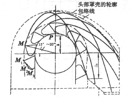 典型颗粒的抛料曲线作出后,便可绘出物料抛出流的包络线(见图4-7),一般头部机壳应比包络线稍大,以避免物料抛出时对机壳产生强烈撞击。
