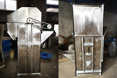 江苏秦经理订购的一台NE15板链斗式提升机已经生产完毕,下午将通过汽运公司发出,样式为单排链,提升量为15立方/小时,提升机总高度17米。...